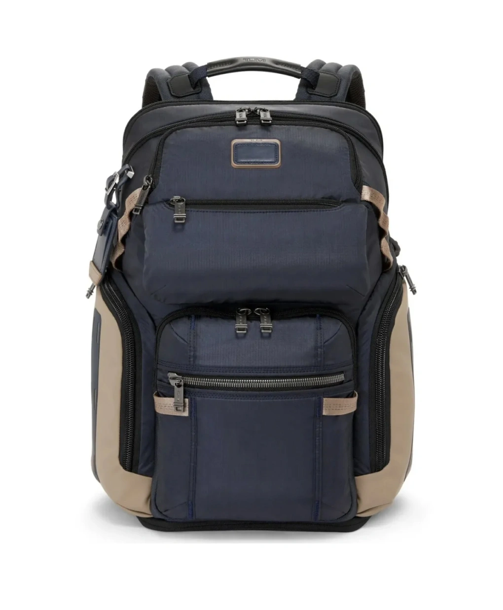 TUMI Alpha Bravo Large Capacity Casual Computer Backpack Blue with Beige 232718Part of our nomadic capsule inspired by the great outdoors, this backpack maximizes carry capacity with multifunction pockets, compartments and TUMI+ compatibility.