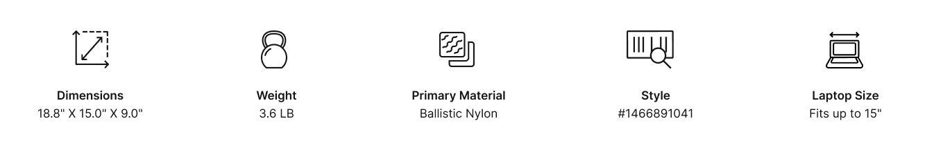 • Back padded zip laptop compartment (fits up to a 15″ PC or 16″ MacBook screen)